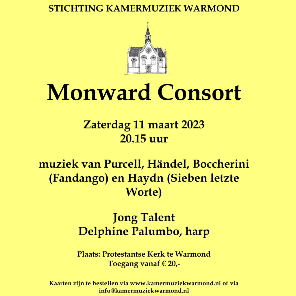 Het volgende concert van het Monward Consort vindt plaats op 24 mei! Het programma wordt binnenkort bekendgemaakt, maar u kunt alvast uw kaarten reserveren. We kijken ernaar uit u te verwelkomen voor een avond vol muzikale verrassingen!